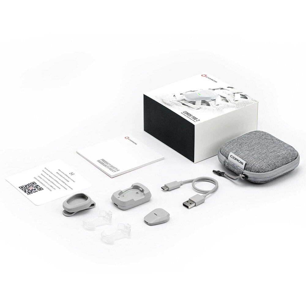 • Two shoe clips, silicone waistband clip, charging dock, charging cable and compact case are included