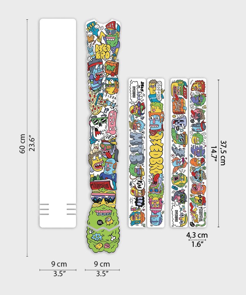 Crafted with durability in mind each kit includes 8 tough easy-to-apply vinyl pieces that guard key impact zones:the top tube down tube seatstays and chainstays. Whether you're riding enduro trail or downhill DYEDBRO protection keeps your bike looking clean and riding hard.