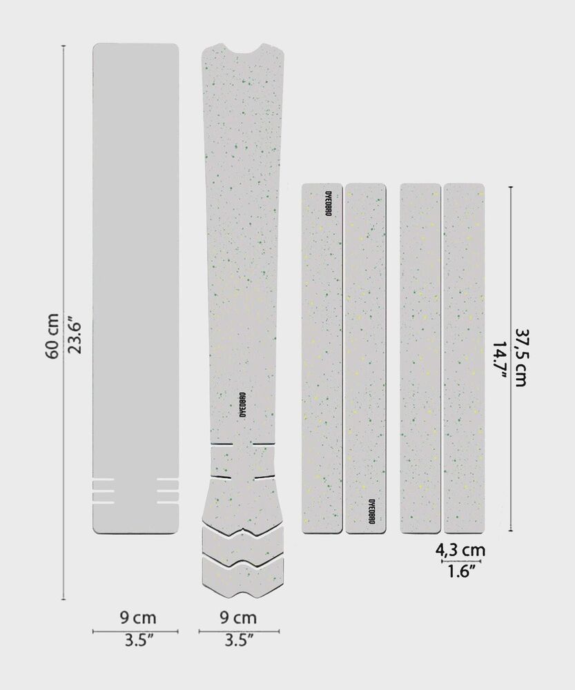 Crafted with durability in mind each kit includes 8 tough easy-to-apply vinyl pieces that guard key impact zones:the top tube down tube seatstays and chainstays. Whether you're riding enduro trail or downhill DYEDBRO protection keeps your bike looking clean and riding hard.